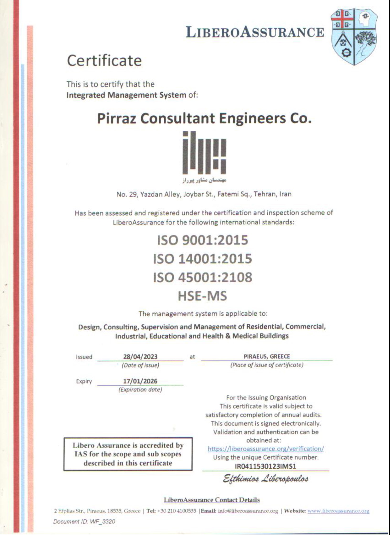 ISO ۹۰۰۱: سال ۱۳۸۷ برای فعالیت های زیر:
