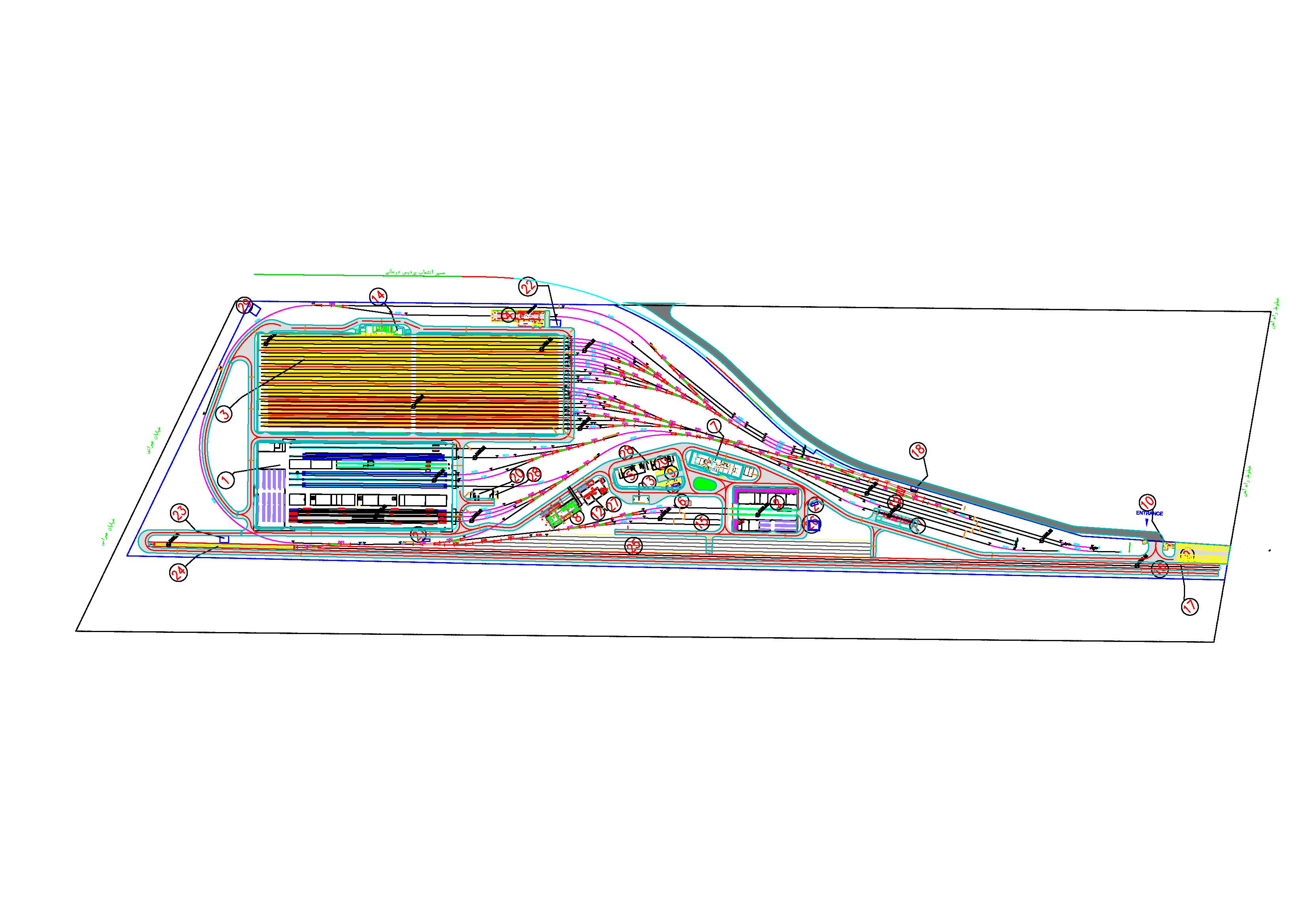 ساختمان توقفگاه ناوگان تعمیرگاه ناوگان تعمیرگاه تجهیزات ثابت و وسایل نقلیه کمکی، تاسیسات شستشوی خودکار ناوگان پست برق ،رانش ایستگاه سوخت رسانی دیزل ساختمان اداری و OCC پشتیبان موتورخانه و کمپرسورخانه ،مرکزی توقفگاه خودروها ساختمان ،نگهبانی ساختمان غبارگیری، تاسیسات آبرسانی انبار مواد ،خطرناک توقفگاه وسایل نقلیه کمکی و انبار روباز خط آزمایش ،ناوگان، حصار خط آزمایش ناوگان تاسیسات بازرسی چرخها توقفگاه روباز ،ناوگان پست برق تاسیسات و تجهیزات ایستگاه جمع آوری زباله ساختمان تصفیه خانه فاضلاب اتاق خط آزمایش ناوگان چال بازدید خط آزمایش ناوگان توقفگاه ناوگان  خط توسعه توقفگاه خودرو ،امداد ساختمان آتش نشانی ،مرکزی تاسیسات دیزل ژنراتور برق