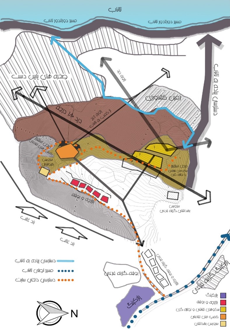 ـ در مواردی که ناگزیر از برش و ایجاد تغییر در بستر طبیعی هستیم خطوط معماری از خطوط توپوگرافی و طبیعی پیروی نموده و برش های نا همگون ایجاد ننماید