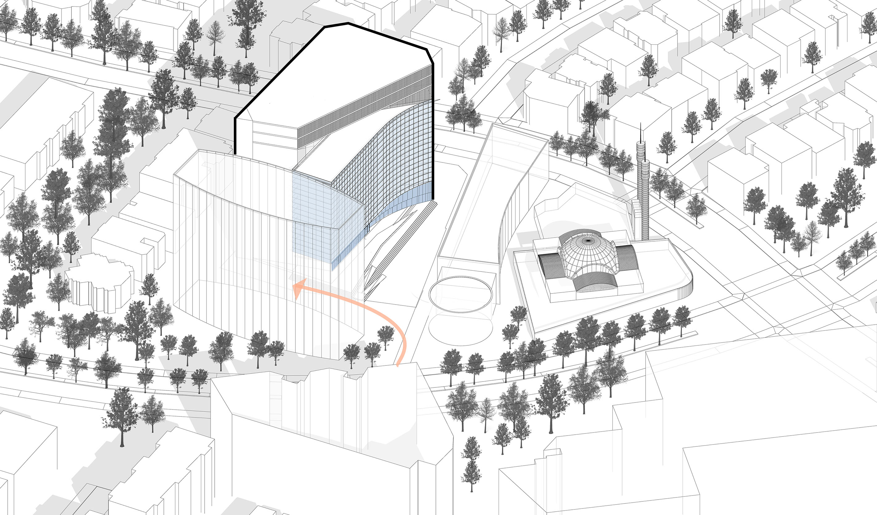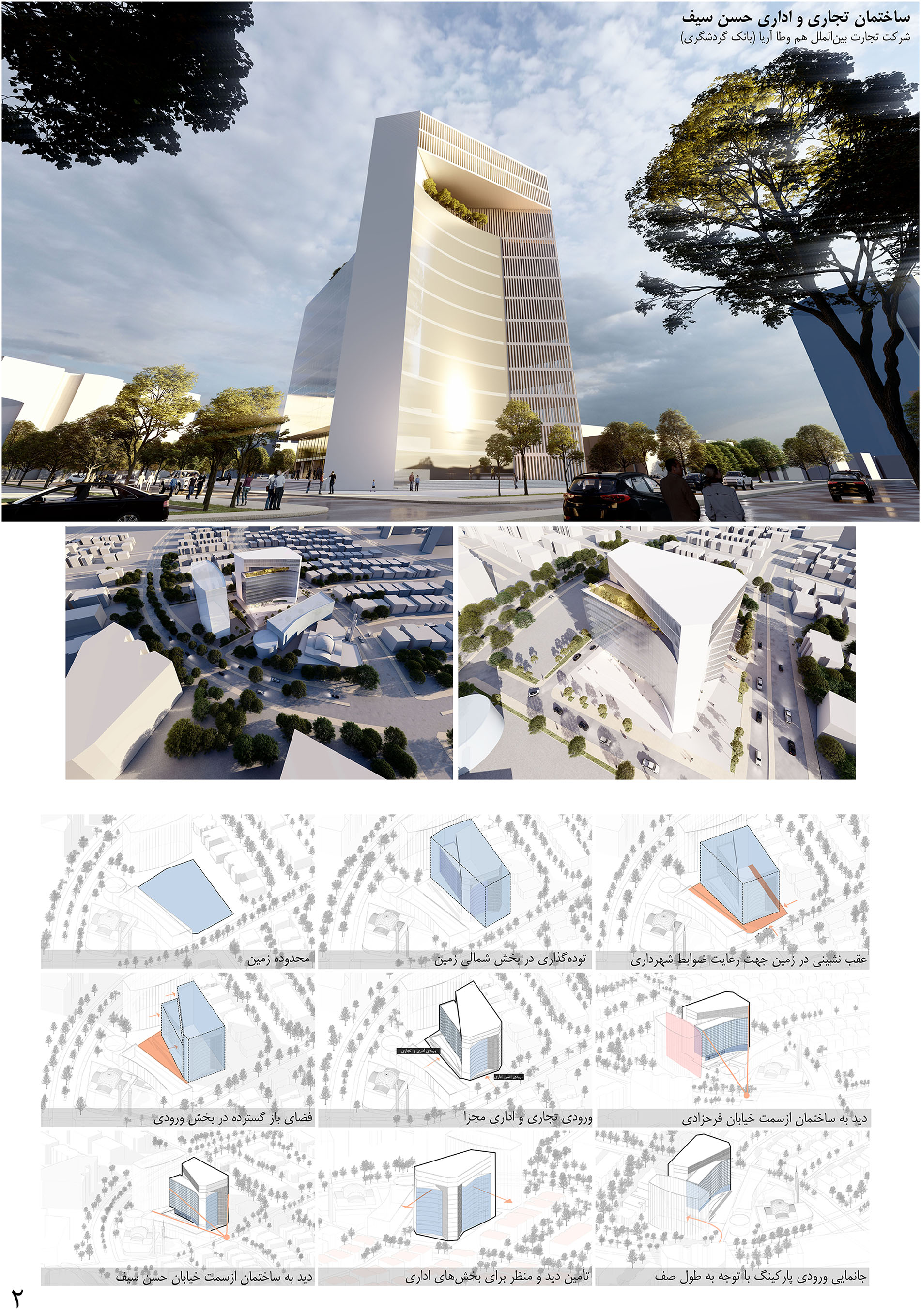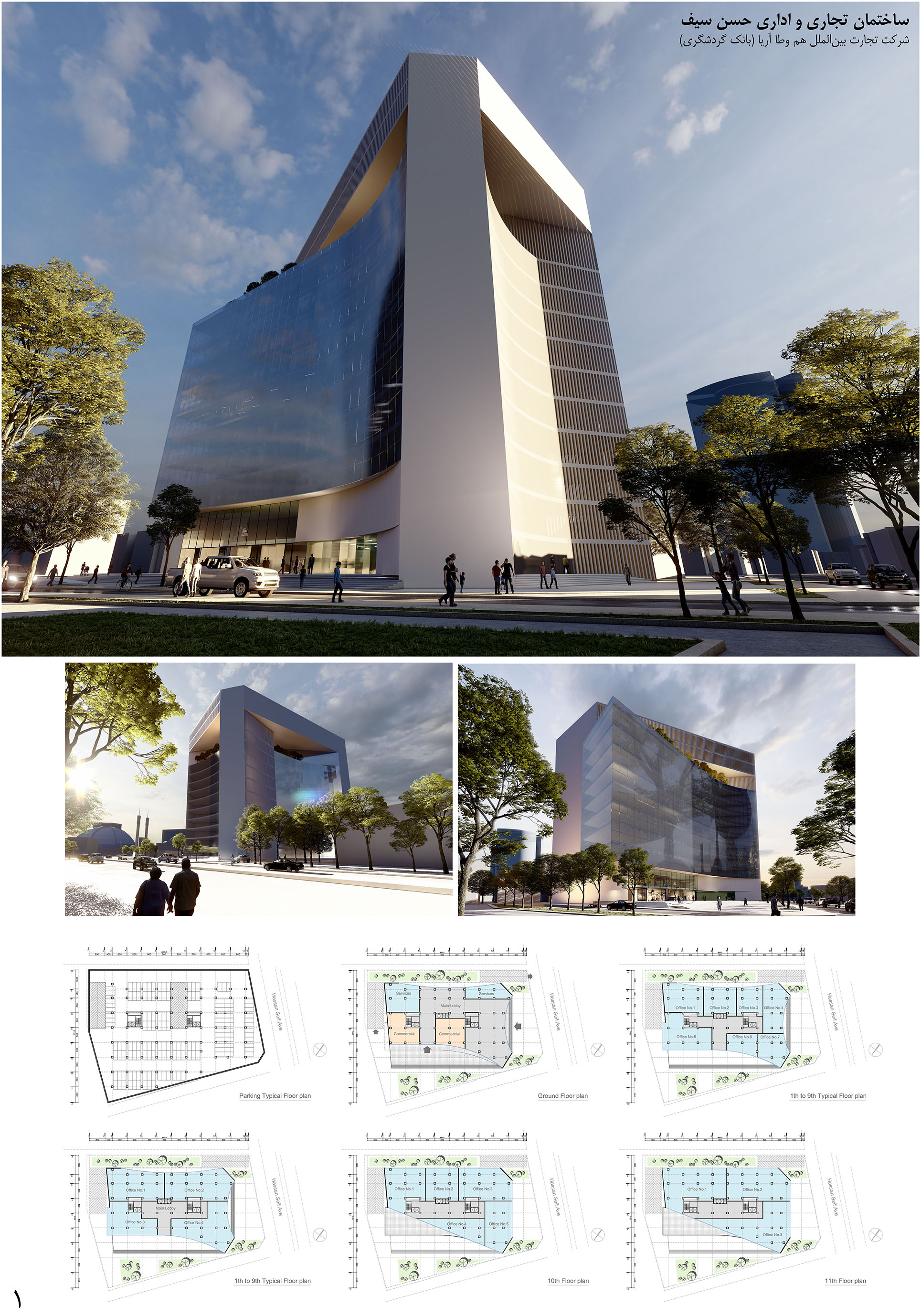 ساختمان موضوع مسابقه در زمینی به مساحت 5600 مترمربع، در خیابان حسن سیف شهرک غرب تهران واقع شده است. زير بناي تقريبي 30000  متر مربع اداری در طبقات یک تا یازده و 2800 مترمربع لابی و تجاری در همکف و 45000 مترمربع پارکینگ در 8 طبقه منفی در مجموع تقریبی 78000 مترمربع می باشد.